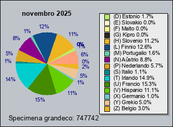Malsupren vi vidas kiel la disvastigado de biletoj disvolvis dum la pasintaj 12 monatoj en Eŭrozono Vi vidas kiun porcion de la biletoj enregistrtaj de niaj uzantoj en la landoj kiuj uzas la eŭron, estis presitaj por Hispanio, Finnlando, Germanio, Aŭstrio ktp. kaj kiel tiu disvastigo ŝanĝis laŭ tempo.